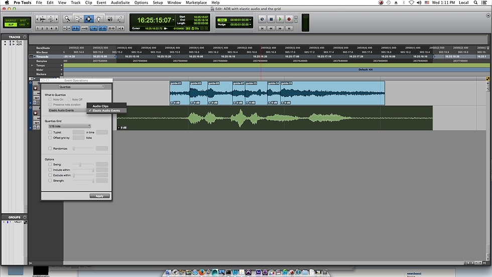 Now, select your ADR recording and apply the quantization. The audio will warp to your custom grid!